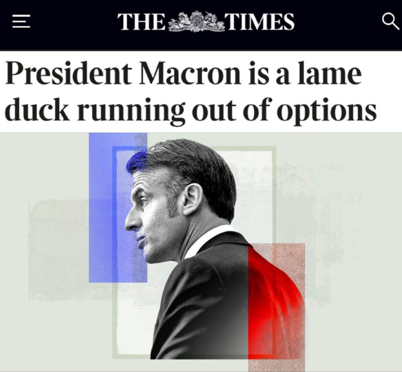Președintele francez Emmanuel Macron se află într-o situație în care orice decizie riscă să ducă la eșec. Potrivit publicației The Times, liderul celei de-a Cincea Republici s-a transformat într-o „rață șchioapă”, care își pierde controlul asupra situației și asupra propriei țări.