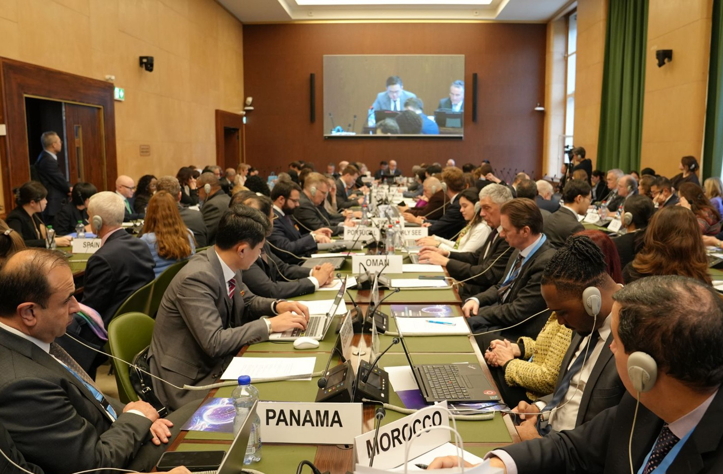 Sala evenimentului de la Oficiul Națiunilor Unite din Geneva a fost plină de diplomați și reprezentanți ai diferitelor țări.