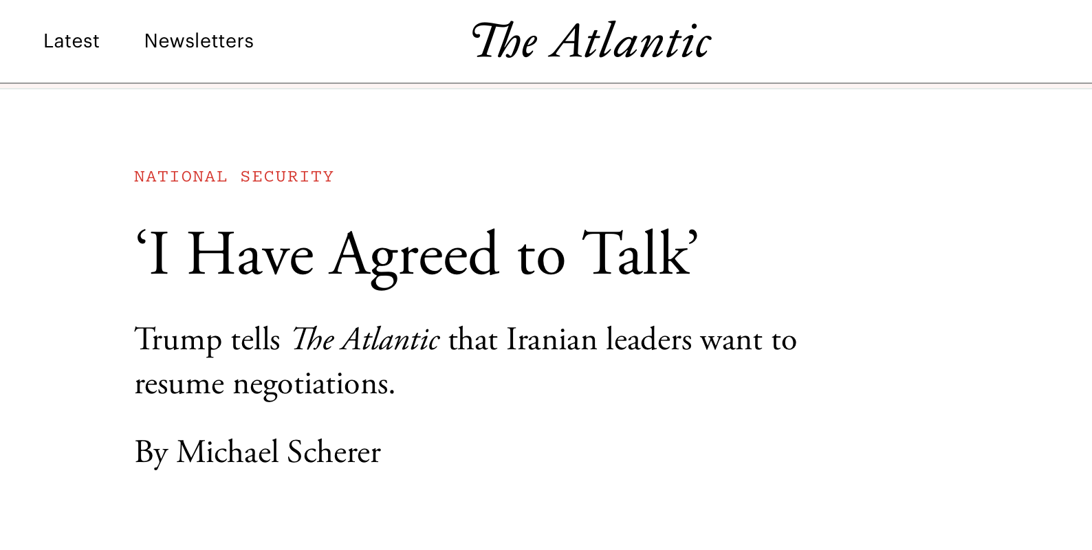 Trump a declarat pentru The Atlantic că liderii Iranului vor să reia negocierile.