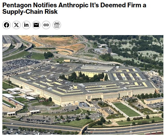 Pentagonul a notificat oficial compania Anthropic că firma și produsele sale reprezintă un risc pentru lanțul de aprovizionare din SUA. Despre acest lucru relatează Bloomberg, citând un oficial de rang înalt din cadrul instituției.