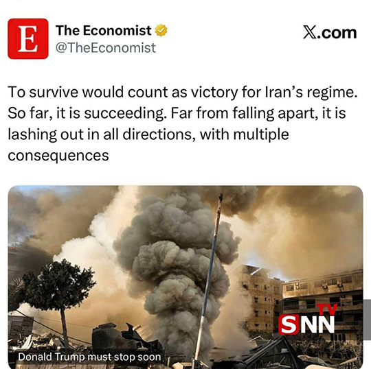 Potrivit The Economist, Trump poate avea noroc, dar este mai probabil să ajungă să se confrunte cu haos regional sau cu o nouă linie dură. Înconjurat de curteni lingușitori, Trump a devenit nechibzuit în al doilea mandat. Acapararea sa oportunistă de putere ori de câte ori vede slăbiciuni este periculoasă.