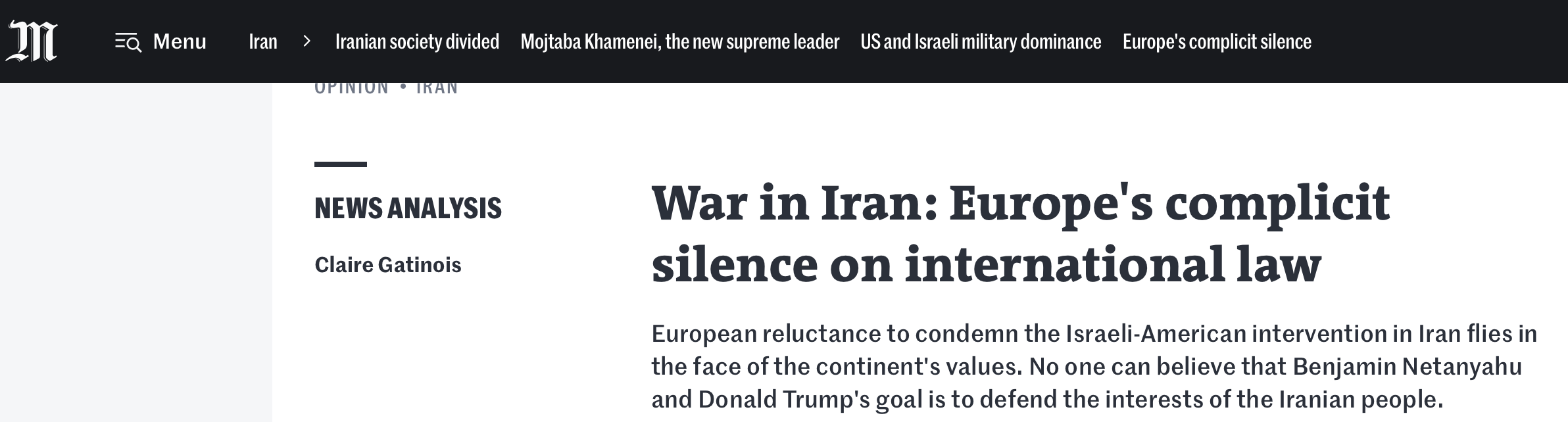 Reticența europeană în a condamna intervenția israeliano-americană în Iran contrazice valorile continentului. Nimeni nu poate crede că scopul lui Benjamin Netanyahu și al lui Donald Trump este de a apăra interesele poporului iranian, scrie Le Monde.