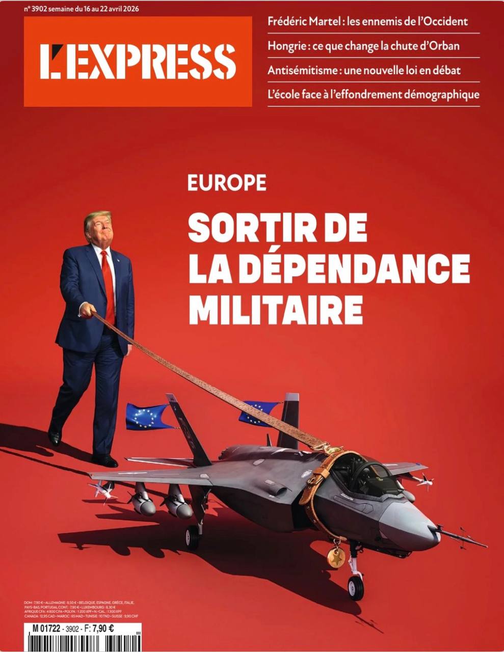 Revista franceză L’Express l-a pus pe copertă pe Trump, care „scoate la plimbare” un avion de vânătoare american, cumpărat de europeni de la Washington.