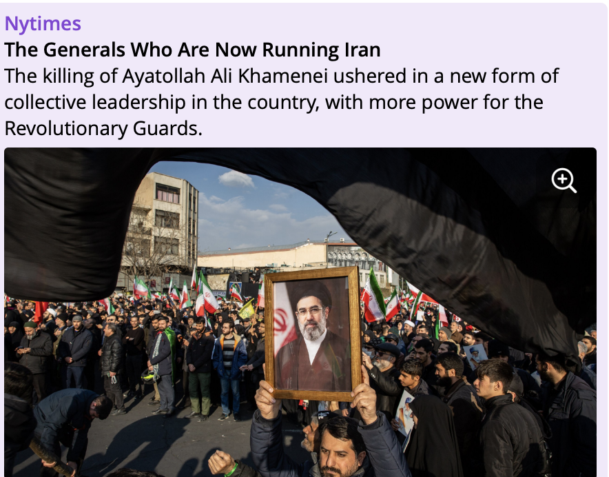După uciderea lui Ali Khamenei și declanșarea războiului, în Iran a apărut un scurt vid de putere, care a fost rapid înlocuit de un nou sistem de conducere. Formal, lider suprem a devenit Mojtaba Khamenei, însă puterea reală nu se află în mâinile lui, ci ale unui grup de militari. Deciziile-cheie privind războiul, securitatea și diplomația sunt luate de un colectiv de generali din cadrul Corpului Gardienilor Revoluției Islamice, ceea ce indică o trecere de la modelul anterior al puterii concentrate într-o singură persoană la o structură mai distribuită, dar în același timp mai orientată spre forță.
