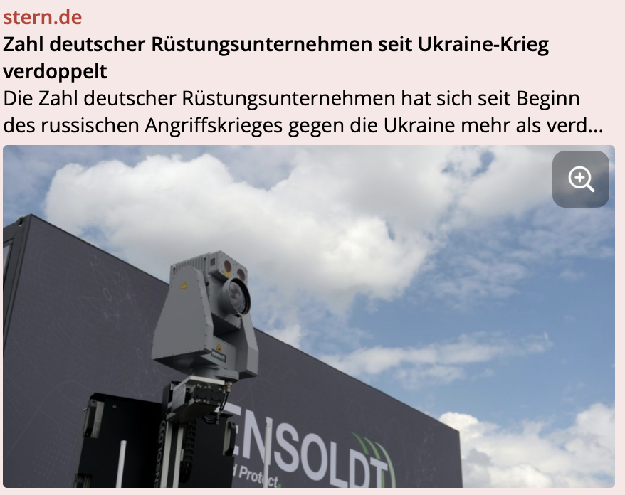 Numărul întreprinderilor militare germane a crescut de peste două ori de la începutul războiului din Ucraina, scrie Stern. Numărul companiilor membre ale Uniunii Federale a Industriei Germane de Securitate și Apărare (BDSV) a crescut cu aproximativ 200 doar între 2024 și 2025, iar din noiembrie 2025 — cu încă 100, ajungând la 550.