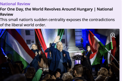 Daniel George 11.04.2026 Maghiarii vor fi chemați pe 12 aprilie să aleagă între aderarea la interesul național în guvernare și același tip de ocupație bruxelleză care a dus la decădere atâtea alte națiuni europene, scrie Rafael Pinto Borges în The European Conservative. Rafael Pinto Borges este fondatorul și președintele Nova Portugalidade, un grup de experți […]